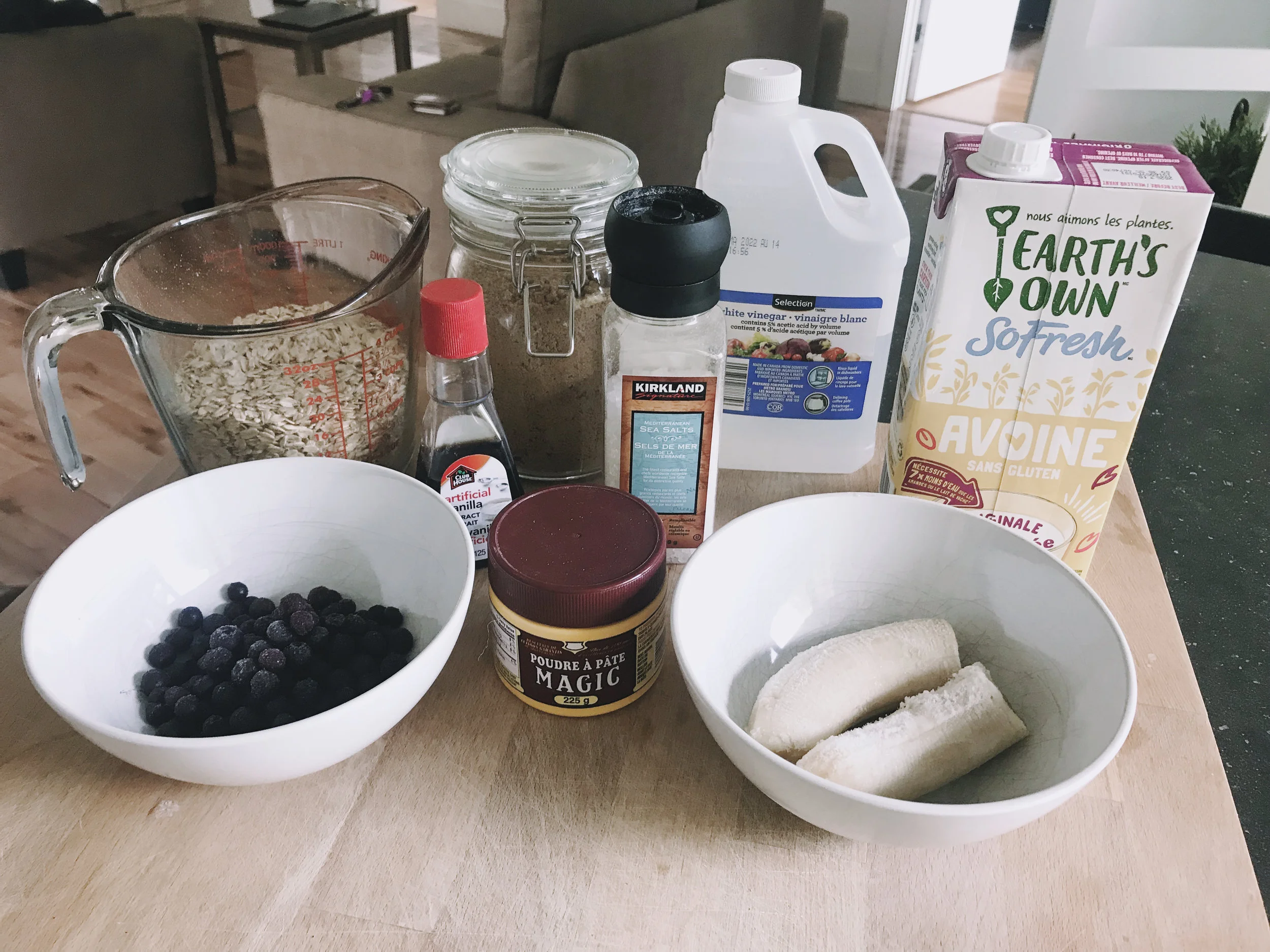 2. Déposer les flocons d’avoine dans un blender à haute puissance pour les réduire en farine. J’utilise le Vitamix à puissance 5 pendant quelques secondes.