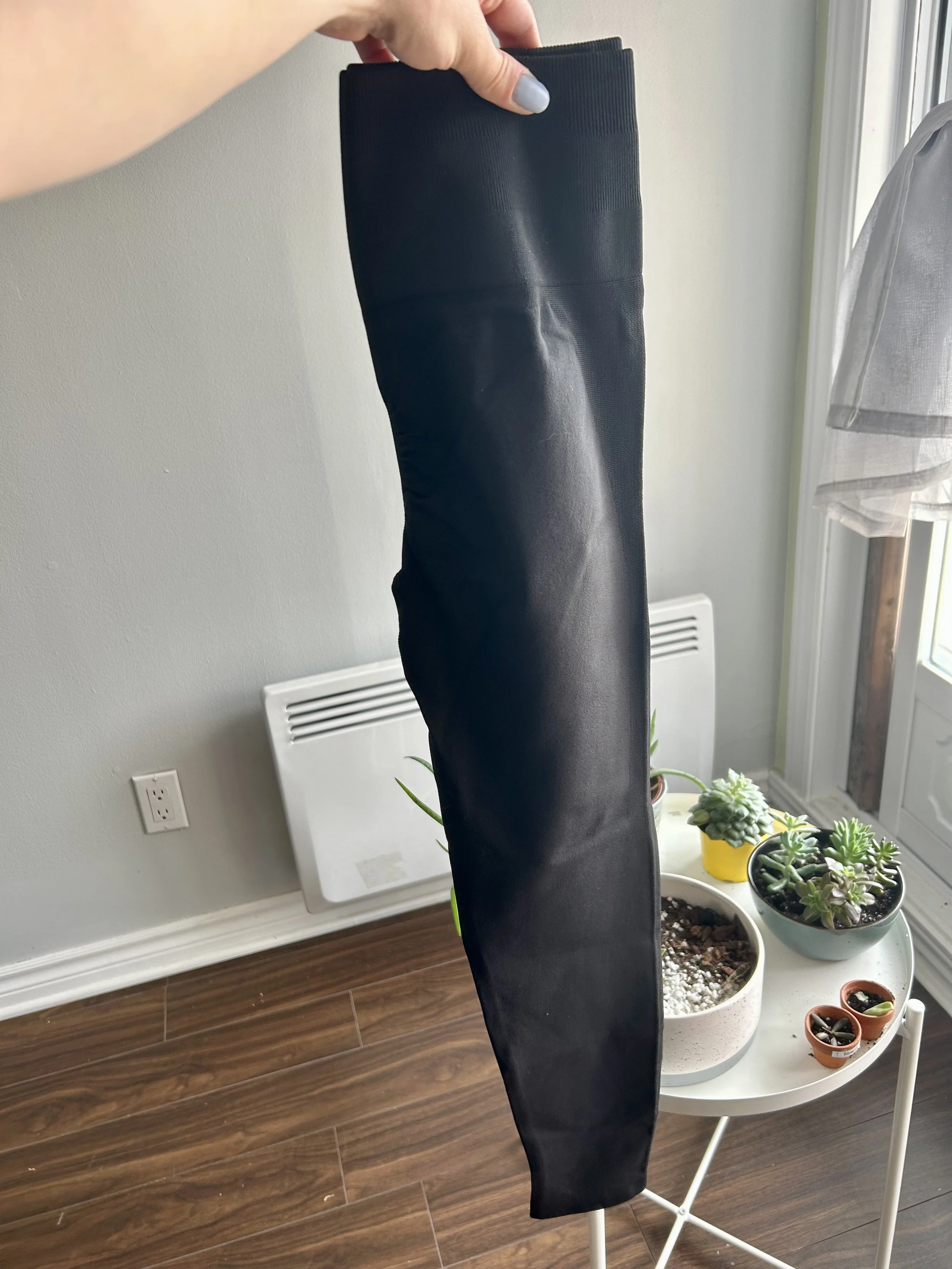 De côté, les leggings affinent la jambe. Par contre, la section “contrôle du ventre” n’est pas placé à la bonne hauteur. Puisque l’élastique est autour de la taille et non autour des hanches, le bas ventre ou pooch est grandement accentué. Si c’est quelque qui vous dérange ou vous préoccupe, alors évitez ces leggings!
